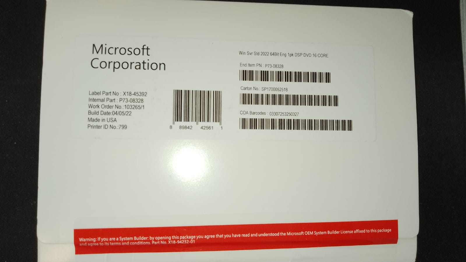 Microsoft Windows Server Standard 2022, 1 Licencia, 16-Core, 64-bit, Español, DVD